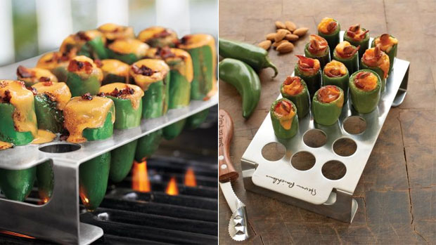 En rejäl hållare i rostfritt stål som håller 36 st Jalapeno eller andra större chilis eller mindre spetsiga paprikor. Perfekt om man vill röka sina chilis i kolgrillen.