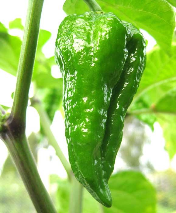 Dorset Naga är en av värdens starkaste chili med en ca 661,000 SHU (Scoville Heat Units) för grön omogen frukt och ca. 1,032,000 SHU för mogen frukt. Jag har köpt plantorna av Joy and Michael Michaud på Sea Spring Seeds i Dorset, England.