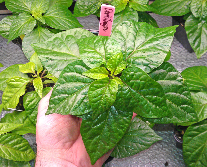 Devil’s Tongue avlades fram av en jordbrukare i Pennsylvania USA under 1990 talet enligt vissa, andra säger att den härstammar från Caribbean. I år så ska jag odla både den gula och röda varianten.